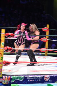 La tercera, mano a mano de Amazonas, la luchadora chilena La Catalina sucumbió a una caída ante la portorriqueña Zeuxis.